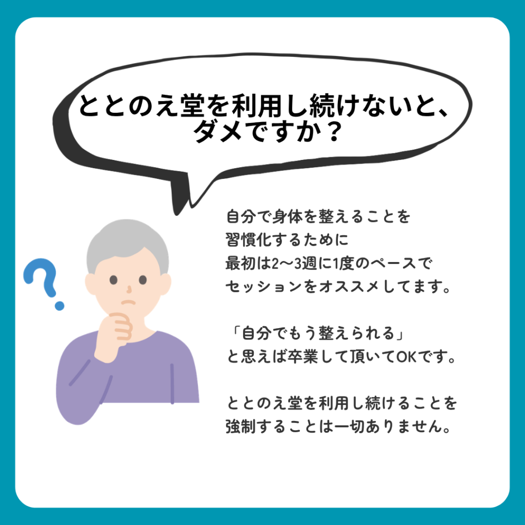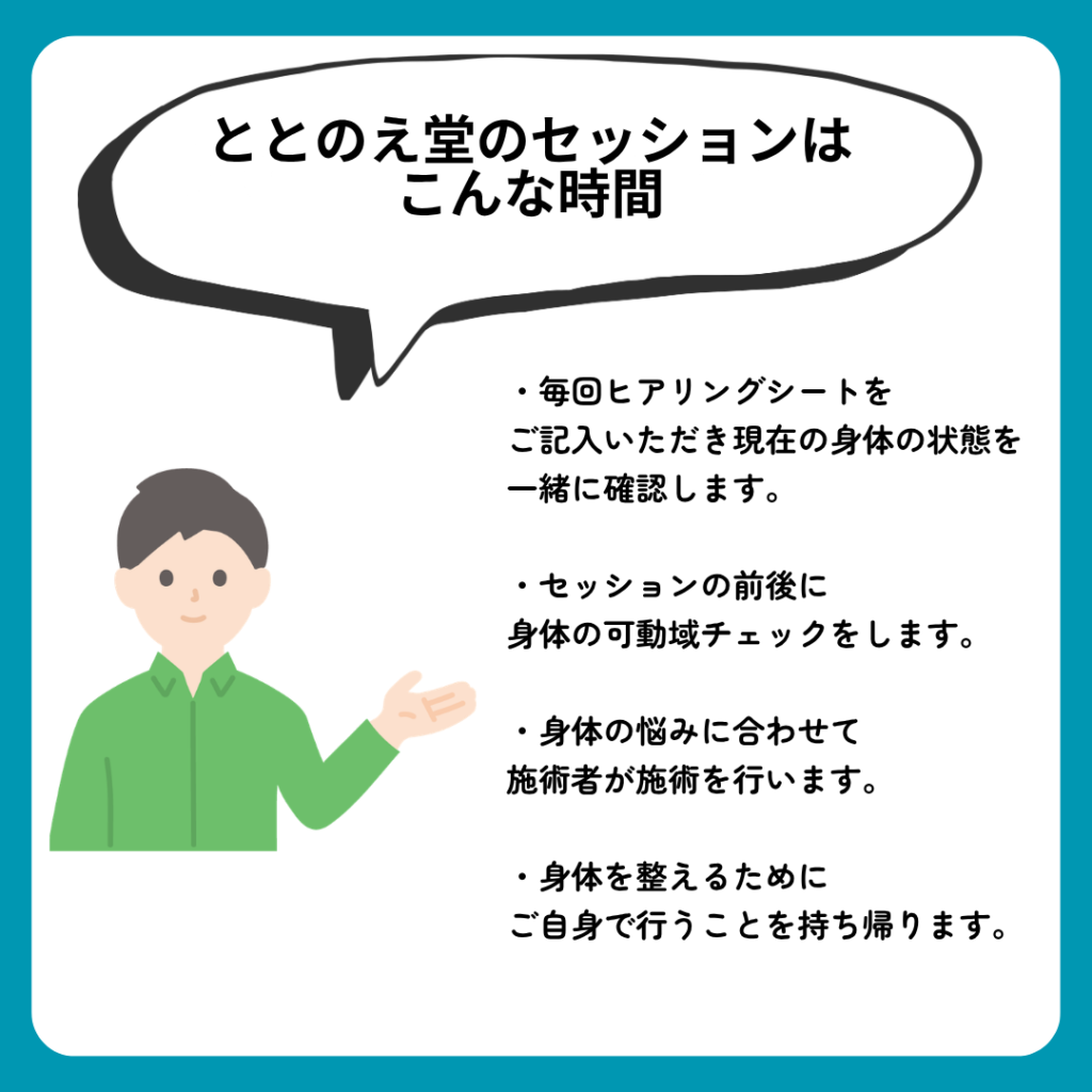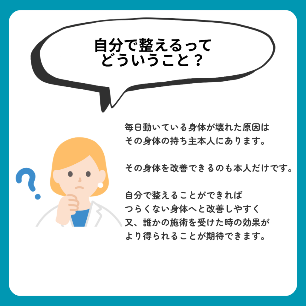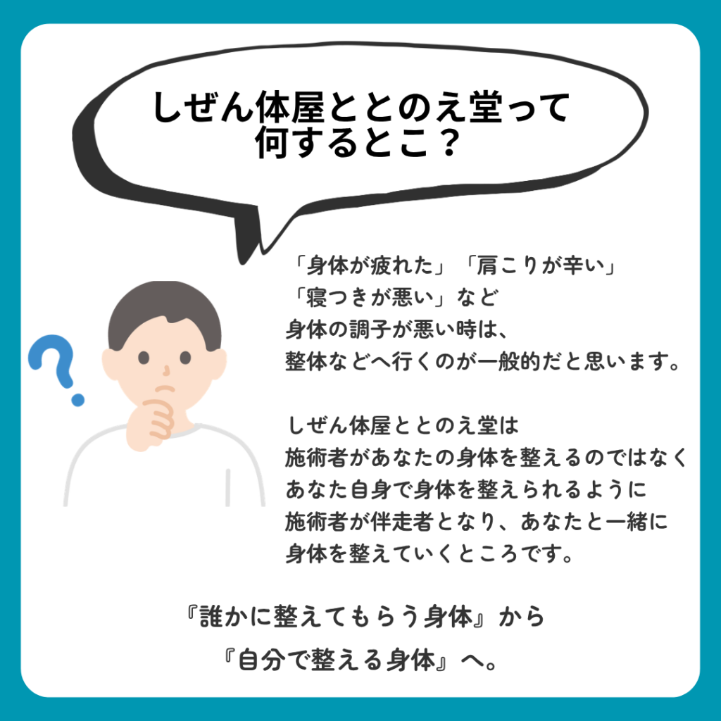 だからこそ、ととのえ堂では「施術で整える」だけでなく、「自分で自分の身体を整える方法」を大切にしています。